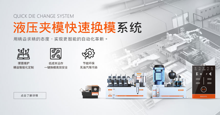 液壓快速換模系統(tǒng) 格萊富注塑機快速換模系統(tǒng)采用 TY 夾模器,以油壓驅動取代舊式固定夾的方式,不需要在模產(chǎn)過程中,短時間內輕易完成換模作業(yè),更省時省力。目前已在家電,汽車、機械等行業(yè)豐富應用